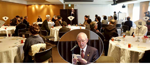 皆様、新年おめでとうございます、県老連の三宅でございます。本日は徳島県シルバー大学校徳島校OB会の新年互礼会にお招きいただきまして誠にありがとうございます。OB会の皆様におかれましては、地域社会活動の貢献など日々、自己研鑽に励んでおられることに心から敬意を表する次第でございます。また日ごろは老人クラブが行っている様々な活動に対し、ご理解とご協力をいただいていることに厚くお礼申し上げます。近年、私たちシニアを取り巻く状況は団塊世代が75歳を超える一方で、それを支える現役世代の減少が著しく、大きな社会問題となっています。さらに、高齢者の社会的孤立も急速に進んでいます。本県は全国に比べ高齢化率が高く、全国を上回る速度で高齢化が進み、超高齢化の社会となっています。このような状況の中で、地域の活躍を日々向上させるためには、私たちが地域社会の中心的な存在として、生涯現役で生き生きと活躍することが求められています。私ども老人クラブでは、フレイル予防の実践や、友愛訪問活動等による相互の助け合いなど、様々な地域活動を通して健康寿命の延伸や社会参加の促進に努めてまいりました。・・・中略(様々の老人会の活動)・・・OB会の皆様におかれましては、これまでの長い人生経験で培ってきた深い知識や実践力を生かして、元気で健康な地域社会の担い手として、地域の老人クラブへのさらなる連携を図っていただければ幸いです。本当に皆様方の御活躍に期待を申し上げております。結びとなりますが、皆様方のご健康とご多幸をまたOB会の益々のご発展を祈念いたしまして、お祝いの言葉といたします。
