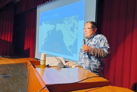 {「アロハ」でにこやかに挨拶をした後、たくさんのスライドを見せて頂きました。日本語を巧みに操り、ハワイについて思うところを余すところなくお話してくださりました。Thank you very much!}