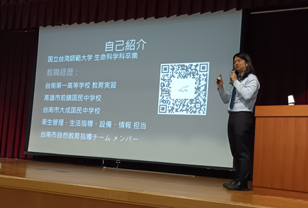 {若者らしく元気いっぱいにお話をしてくださりました。徳島との縁を大切に、徳島での日々を楽しんで過ごしていることが伝わってきました。留学の残りの日々をもっともっとたくさんの徳島人と関わって、たくさんの思い出を台湾に持ち帰り、生徒達に話してもらいたいと思います。「多謝」}